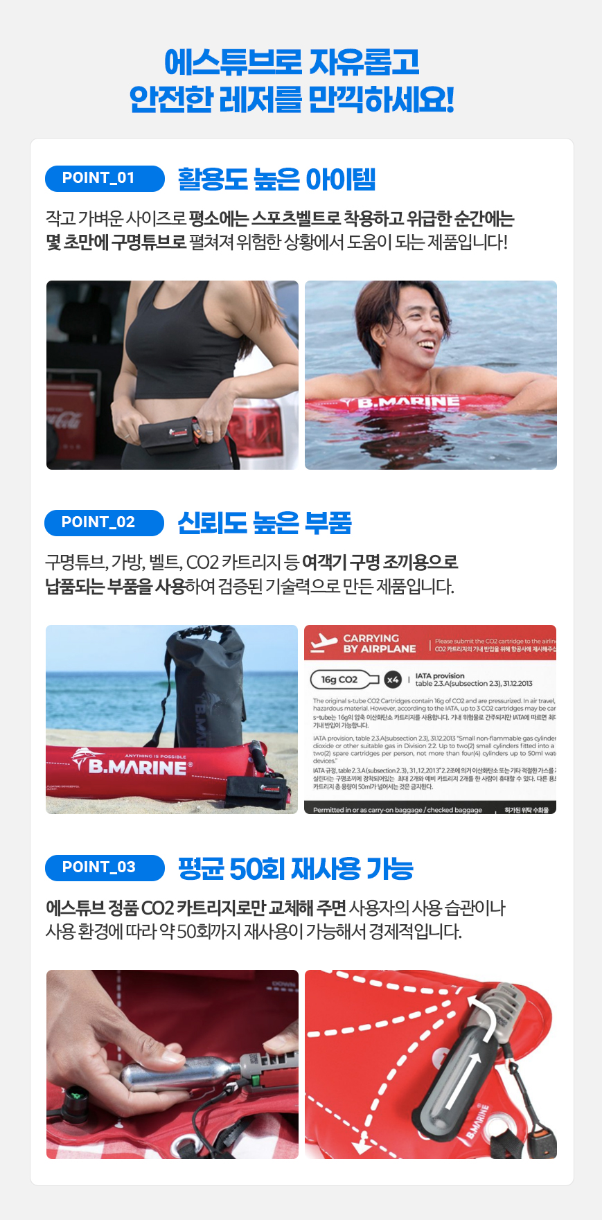 CO2 카트리지 및 물 활성제로 재포장 용이