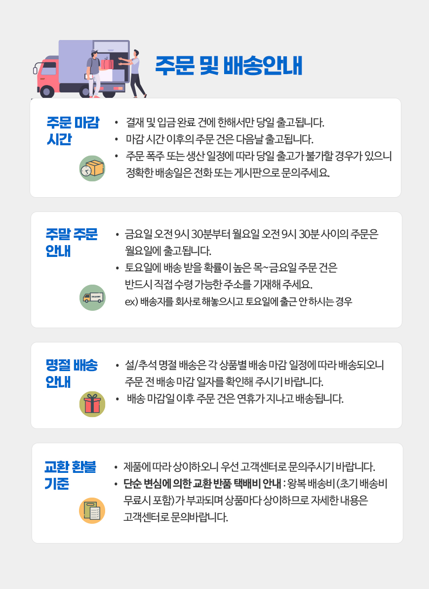반품 시 먼저 판매자와 연락하셔서 반품사유, 택배사, 배송비, 반품지 주소 등을 협의하신 후, 반품하시기 바랍니다.